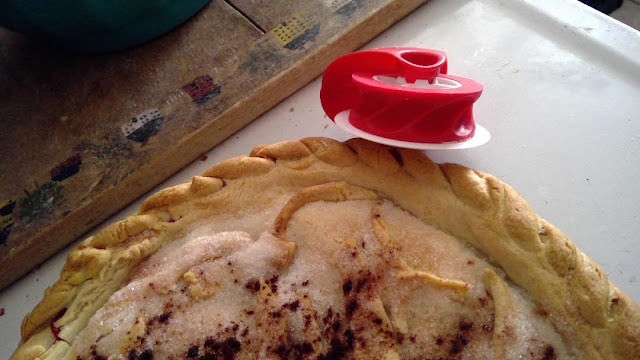 Here are two pie making tools I got long before the pandemic happened at my thrift store. The red tool I almost went on by, as I have a pizza cutter that looks similar but I picked it up and noticed it was different and since it was very cheap I picked it up. I quite like how it does the edge of the pie while cutting off the excess crust.